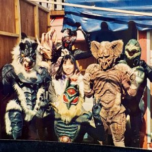 写真は、怪人オールスターズと、バックヤードにて。