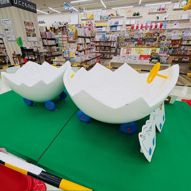 写真は、先日本屋さんの絵本の売場でみつけた「ぐりとぐら」のたまごの車。